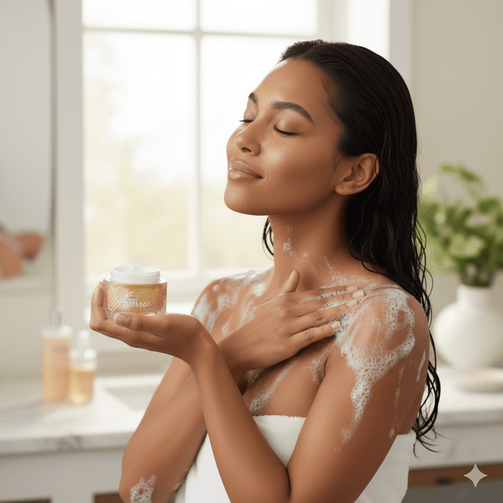 "The moment I started using Averra, my routine felt more intentional. The scent is natural and uplifting, and the cream is so rich. It makes me feel pampered and confident—like I just left a spa. This is now my favorite part of the day."